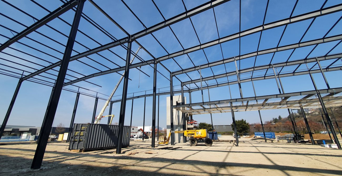 Waltefaugle est actuellement en charge du montage, avec 3 portiques de 30.00 m en largeur, pour une longueur de 90.00 m et un tonnage de 450 tonnes.