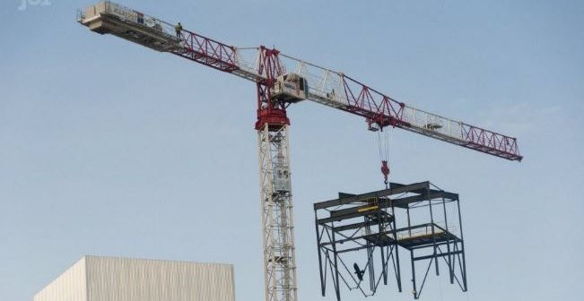 L'assemblage a été réalisé au sol avant levage des étages comprenant la charpente, le plancher, la serrurerie, le bardage. Le tout pour un poids de 28 tonnes environ à chaque levage.