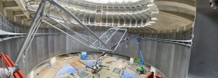 - La passerelle technique de 120m de circonférence sur l'ensemble du fût avec garde-corps, caillebotis et rail pour nacelle en sous-face, est elle traitée en peinture intumescente.