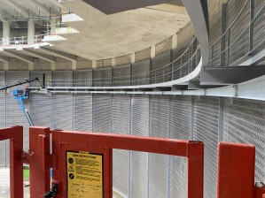 - Fourniture et pose de 36 épines en demi IPE thermolaqués de 14m de long, servant avec les cornières horizontales, de cadre pour l'accroche pour les mailles décoratives;