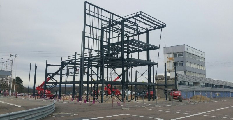 Après les travaux de construction de la tour de contrôle l'année dernière, nous procédons à la phase 2 du chantier, à savoir la construction des paddocks au rez-de-chaussée, des salles de briefings et des loges à l'étage et également des coursives qui permettront d'admirer le circuit.