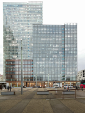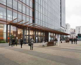 Aménagement extérieur avec la création d’auvents et jardinières en pied d’immeuble pour les tours Altaïs à Montreuil.