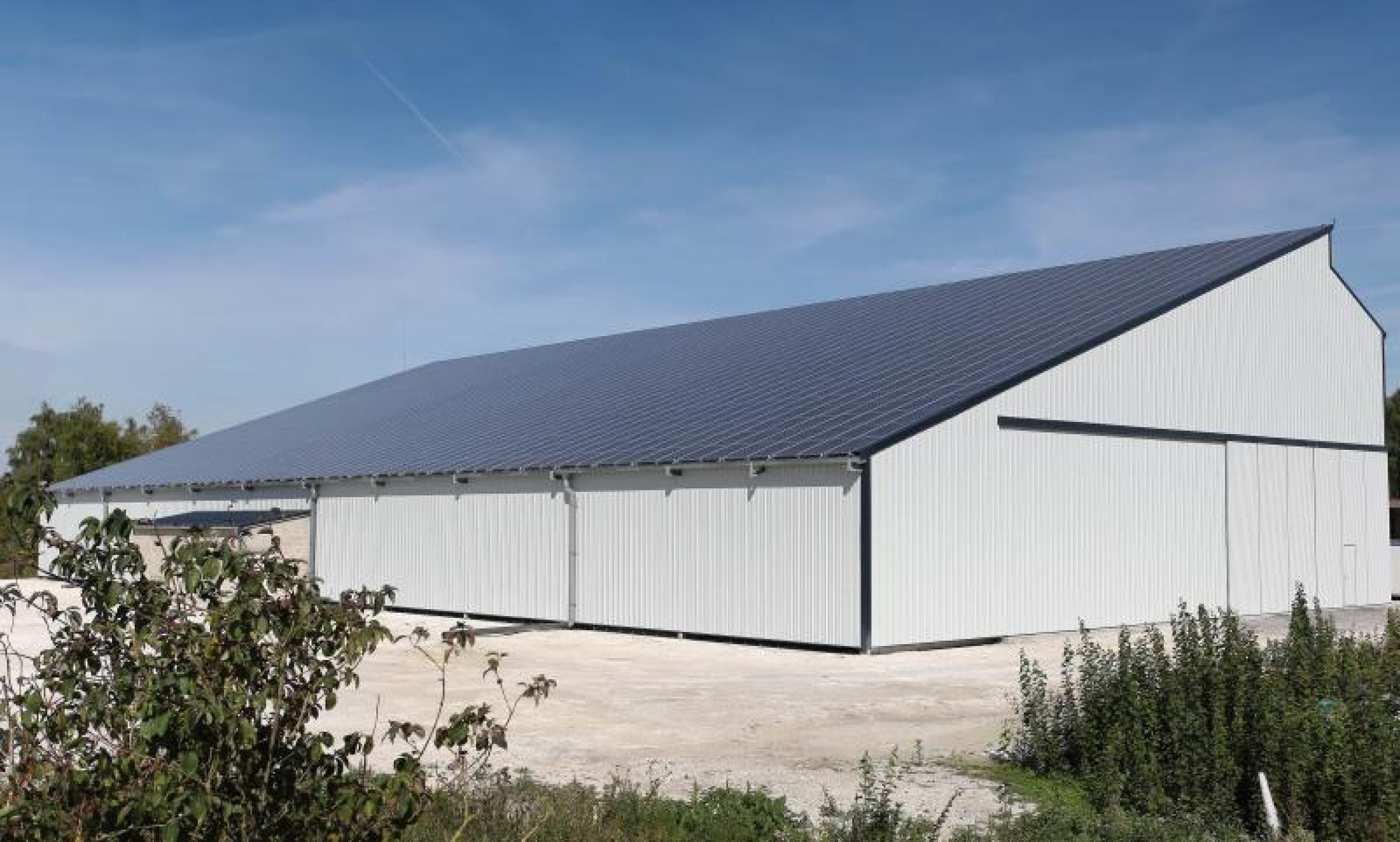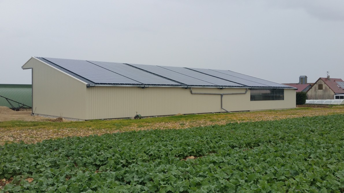 Nous sommes les premiers charpentiers à avoir construit un bâtiment agricole avec une toiture intégralement couverte de panneaux photovoltaïques en Alsace.