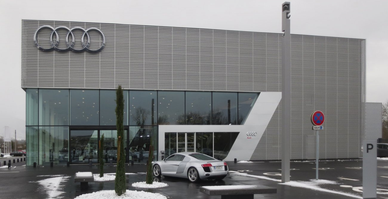 Par son aspect épuré, l’acier, très résistant par ailleurs, habille avec élégance l’espace clientèle. Les ateliers attenants et les surfaces de stockage des véhicules sont traités de manière à la rendre le plus fonctionnel possible.