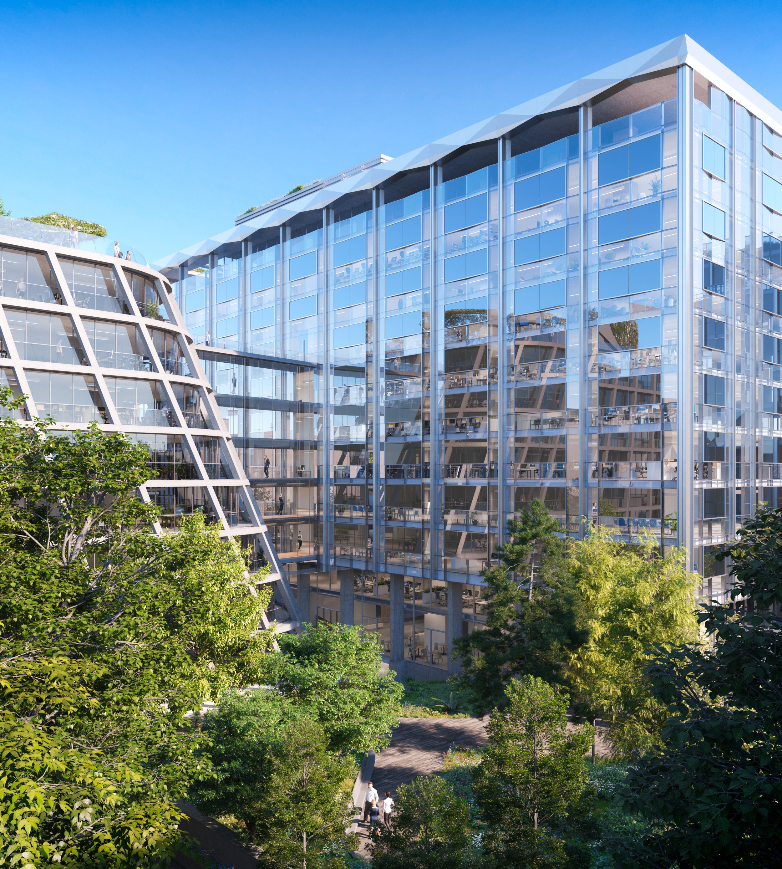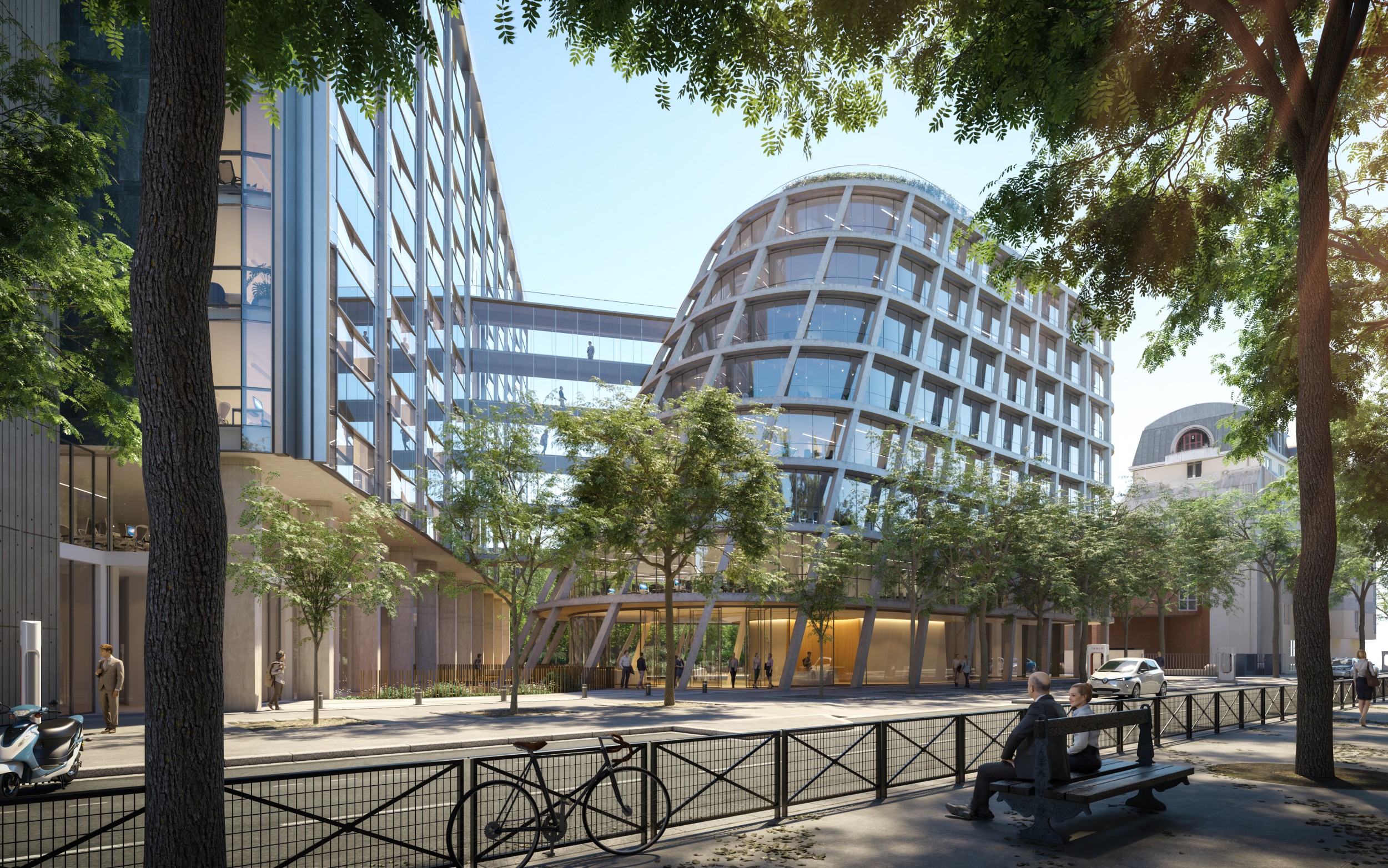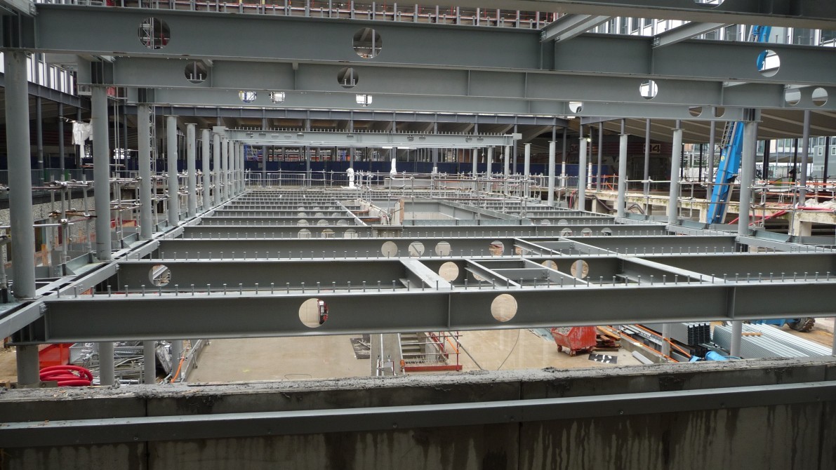 840 T d'acier en plein coeur de Paris dans un site exigu, avec le renforcement d'un bâtiment IGH de 11 étages, la ré-hausse de 3 étages d'un autre bâtiment et la construction d'un dernier bâtiment en forme de goutte d'eau / construction mixte acier / béton