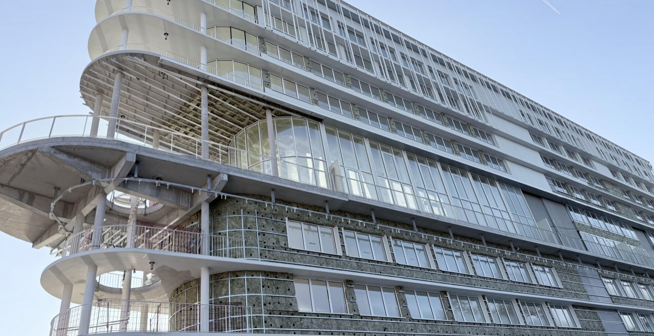 Nos monteurs ont débuté la pose des montants et lisses qui permettront la mise en œuvre des futurs brise soleil décoratifs réalisés en tubes ronds galvanisés et thermolaqués.