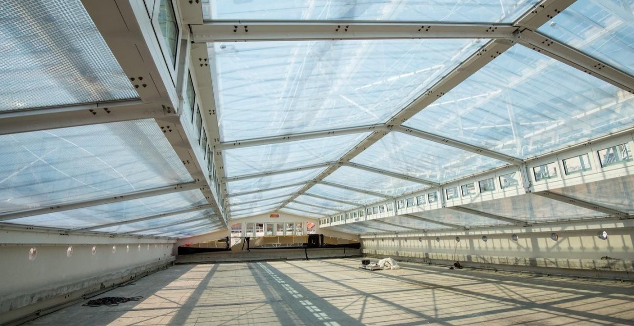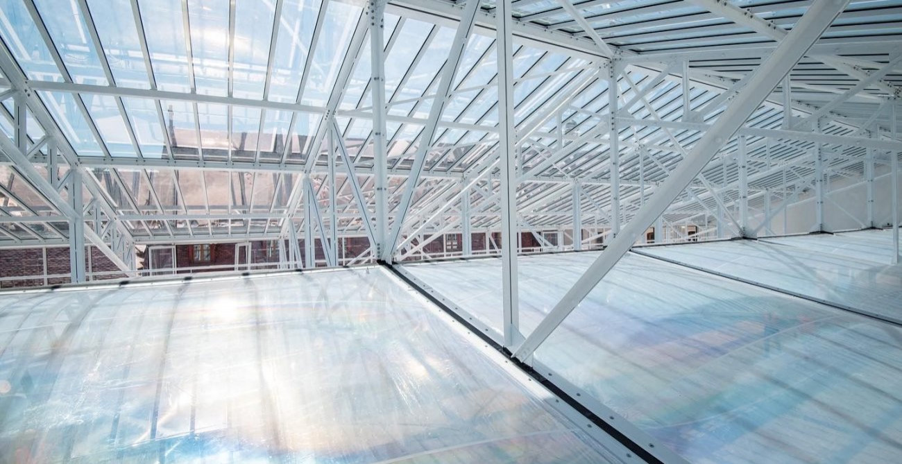 Intervention sur une structure existante afin de remplacer la verrière initiale. L’ensemble étant dans un site existant, un scan 3D intégral de la cour a été réalisé afin d’adapter la structure à l’existant.